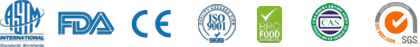 擁有全球主要目標市場準入資質認證如美國510(K)認證、NSF食品體系認證、BRC消費品體系認證、加拿大CMDR認證、歐盟CE認證等。